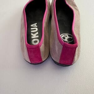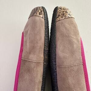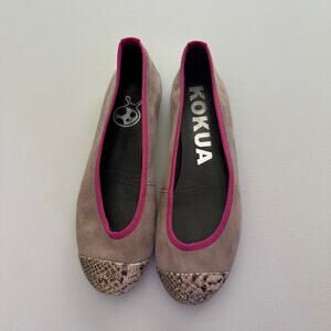 Kokua Suede Taupe Ballet Flats Snake Cap Toe Magenta Trim EU 38 / US 7