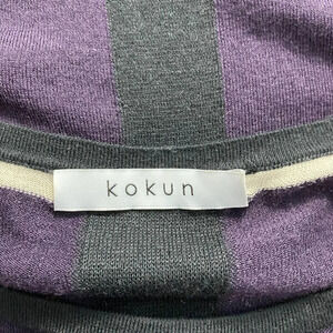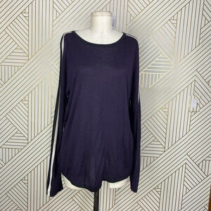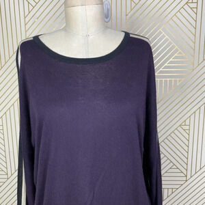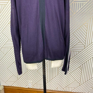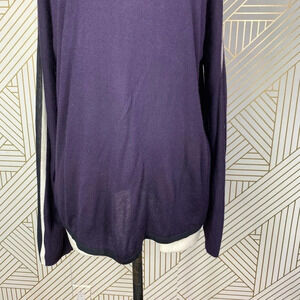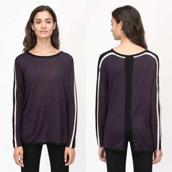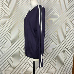 Kokun Back Slit Pop Stripe Crew Neck Bamboo Cashmere Sweater Purple Size Large