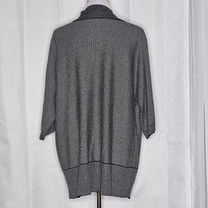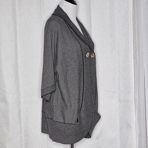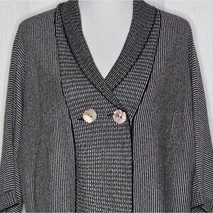 Kokun Cashmere Wool Lagenlook Drop Front Black Creamy White Trendy Knit Sweater