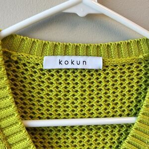 Kokun sweater green and grey medium cotton vneck Soft! No flaws or stains!