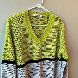 Kokun sweater green and grey medium cotton vneck
