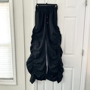 Kollyy Black Harajuku Nylon Baggy Ruched Gathered Y2K Windbreaker Pants Small