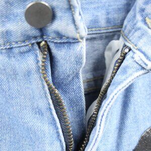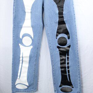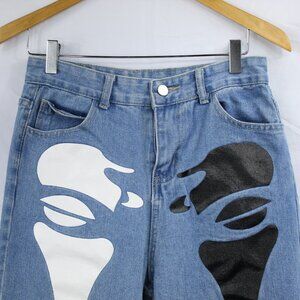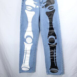 Kollyy Women's Loose Blue Jeans with Graphic Skeleton Black & White Design Sz M