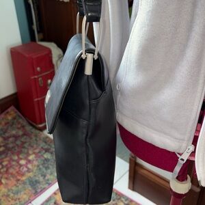 Koltov shoulder bag vegan leather navy blue brushed Silvertone hardware EUC