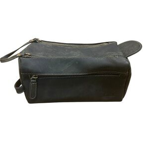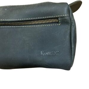 KomalC Premium Buffalo Leather Unisex Toiletry Bag Travel Dopp Kit black zip