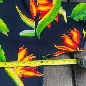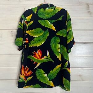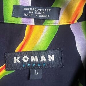 Koman Hawaiian Shirt Casual Button Down Navy Blue/Green Size Large