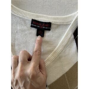 Koman Jeans Acrylic Sweater Vest Size XXL V-Neck Argyle Cream Multicolor