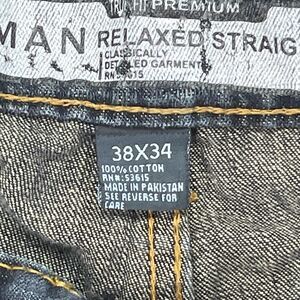 Excellent pre owned relaxed fit straight leg Koman jeans size 38x34.