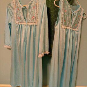 Komar Vintage Nylon Peignoir Nightown Robe Set Dainty Blue Feminine