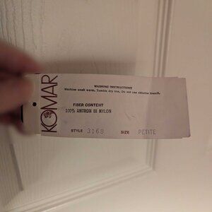 This dainty feminine 2-pc set was new with tags when I purchased it. This is size Average Petite, made of Antron Nylon. I would guess this to be from the 1970s as it reminds me of the set I had in 1970. I removed the brand tag and washed it, let it air dry. It's a beautiful set with a the color being a pale blue. However, there are a couple areas where there is a faint gray mark. (Last pic). It is quite unnoticeable. Rather than taking a chance, I will let the new owner deal with it if bothers them. Priced accordingly.