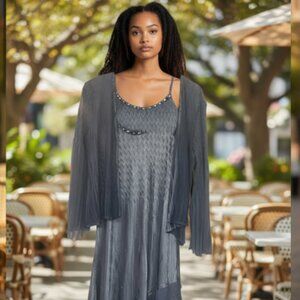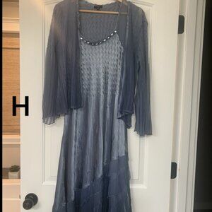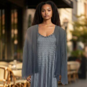 Beaded neck Chiffon Midi blue/ gray dress