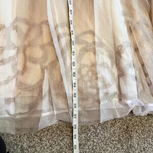 Komarov Cream Tan Sleeveless Satin Crinkle Tiered Beaded Ombre Midi Dress