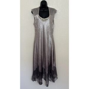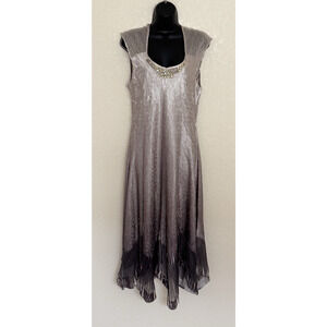 Komarov Crinkle Dress Sleeveless Gown XL Charmeuse Beaded Fairy Ethereal Whimsy