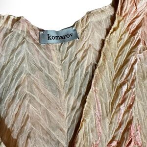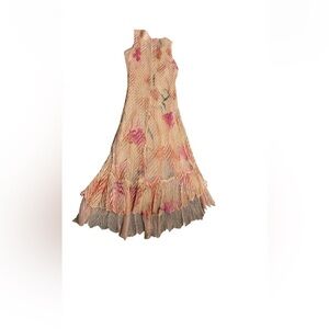 Komarov Crinkle V Neck Floral Peach Pink Midi Whimsical Fairy Dress Small USA