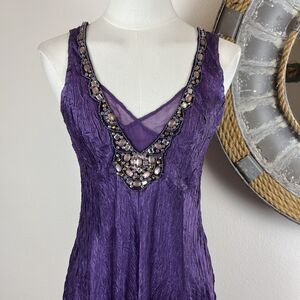 Komarov Dress Womens Petite Small Purple Beaded Sleeveless Asymmetrical Hem Boho