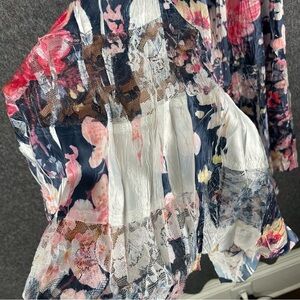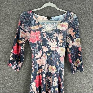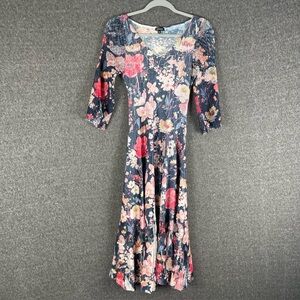 Komarov Floral Feminine Romantic Crinkle Softcore Twirl Fit Flare Midi Dress M