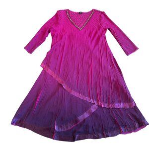 Komarov Ombré Slit Sleeve Charmeuse Chiffon Cocktail Party Dress Size Large