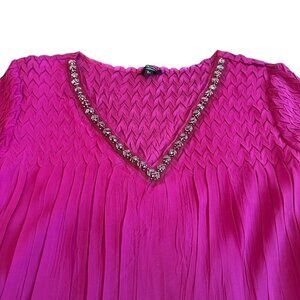 Stunning bead detail at neck; Very flattering cut with tons of movement