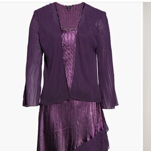 Komarov Ombré Tiered Hem Cocktail Dress With Chiffon Jacket Large NWT $450