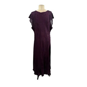 Komarov Purple Crinkle Cap Sleeve Pleat Maxi Dress Plus Size 2X