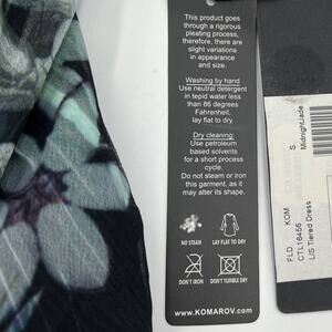 Komarov Sheer Pleated Long Sleeve Tiered Dress Watercolor Floral Green Black