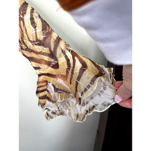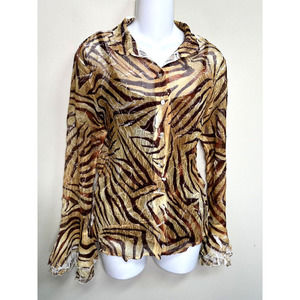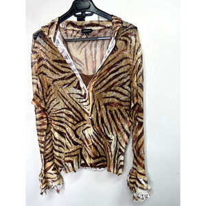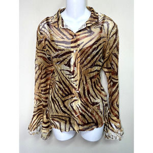 Komarov Signature Pleats Exotic Button Front Top Blouse with Liner, ruffle ~M