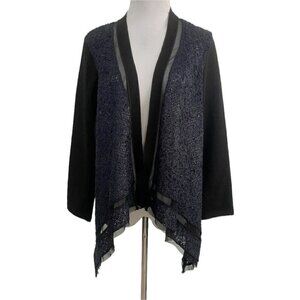 Komarov Size XL Top Jacket Cardigan Navy Black Open Front