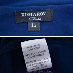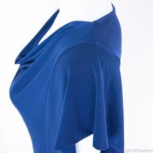 Komarov USA-made navy blue drop cowl neck dolman sleeve dress, L