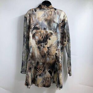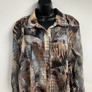 Komarov Women's Crinkle Lace Button Abstract Long Sleeve Shirt Size XL