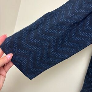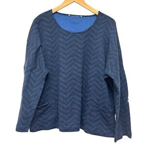 Great Komil Aberdeen Weave Dolman Top. Soft tonal blue weave. Dolman sleeve with roll up tab. Patch pockets missing brand and size tag. See measurements