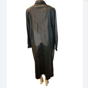 Komitor 51" Calf Length Women's Black Leather Trench Coat Style 02734 WPL 5602