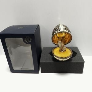 Komozja Family Blown Glass Leopard Jeweled Hinged Egg Christmas Ornament