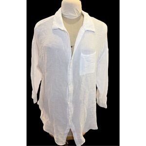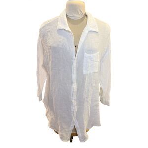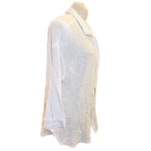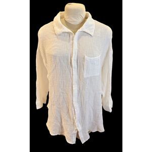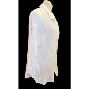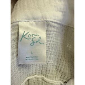 Kona Sol women’s waffle knit button-down shirt in white. Lightweight textured fabric with a relaxed fit, classic collar, and chest pocket. Perfect for casual wear, layering, beach days, or vacation outfits.