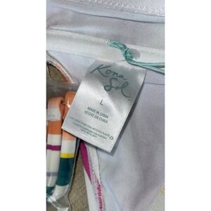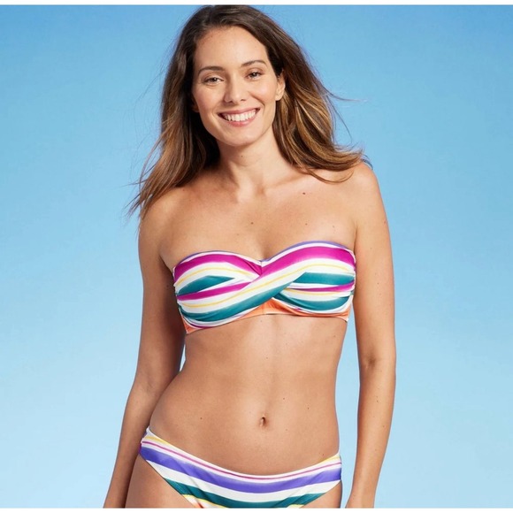 Make a splash with this Kona Sol women's twisted bandeau bikini top, featuring a stylish striped pattern and flattering twist-front design. Perfect for sunbathing or swimming, this top offers both comfort and support with optional straps (if included) and a secure fit.