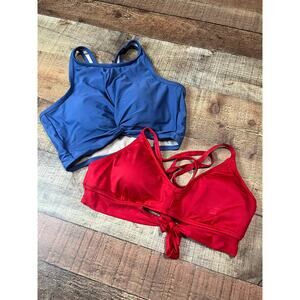 Kona Sol | BUNDLE Blue Halter Twist Red Strappy Bikini No Underwire Top Sz M