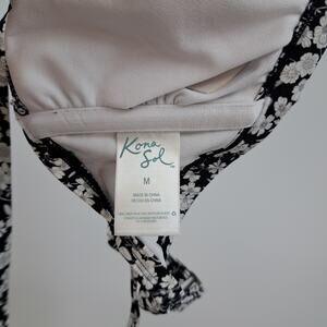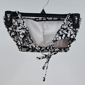 Kona Sol Bikini Swim Top M Floral Tie Neck Halter Bandeau Swimwear Black White