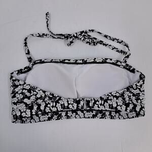Kona Sol Bikini Swim Top M Floral Tie Neck Halter Bandeau Swimwear Black White