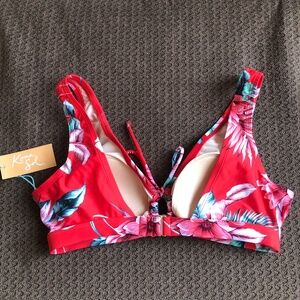 Kona Sol Bikini Top Red Keyhole Tropical Lightly Padded Women Size M (8-10) NWT