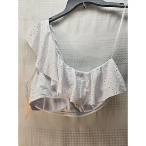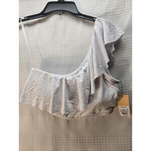Kona Sol Bikini Top Sz Large White Eyelet One Shoulder Flowey Beach Summer 5773