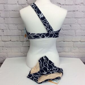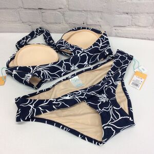 Kona Sol Bikini Women’s Sz Lg 2 Piece Bathing Suit Navy & White Floral Swirl NWT
