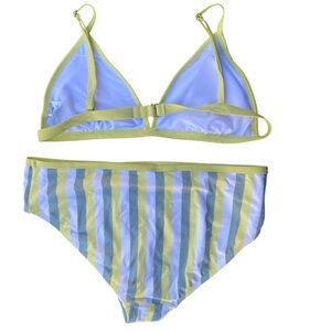 Kona Sol Bikini Yellow Gray Green Stripe Swim Suit Set