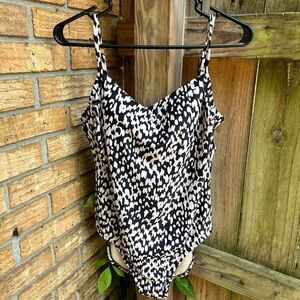 Kona Sol Black and White Asymmetrical Sleeveless Bodysuit