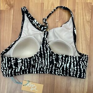 Kona Sol Black and White Patterned Swimsuit Top