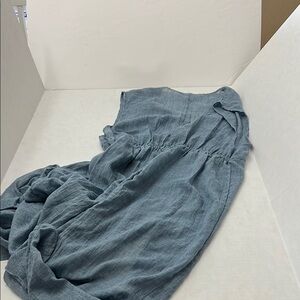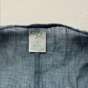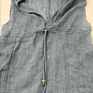 Stylish blue swim coverup. Features a drawstring hood and side slits. Perfect for beach days.
