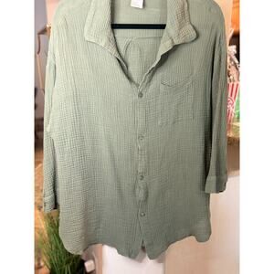 Kona Sol Cotton Gauze Button Sage Blouse Shirt Size XL 10-16