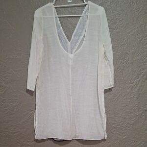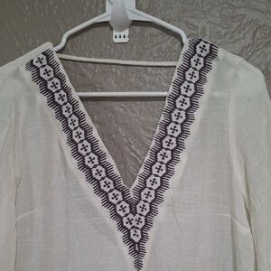 Kona Sol Cream V-Neck Tunic with Black Detailing Size M