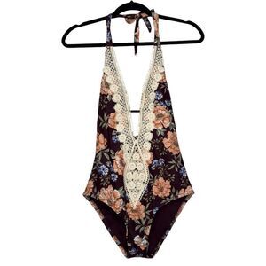 Description: Kona Sol Crochet Lace Plunge Swimsuit