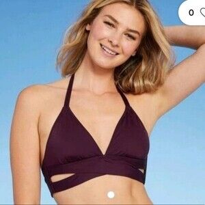 One of my favorite bikini tops from Target last summer. The cut out adds fun to this classic halter top—it makes it look like it wraps around the back. Removable padding. Size L. Excellent used condition.
