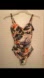 Chic one-piece swimsuit with a floral print. Features an adorable floral pattern, a built-in, padded bra, adjustable straps and has a cute bow tie on the front for extra style! It is in excellent used condition and it is women’s size small