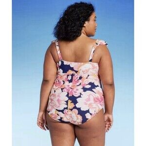 This is a Kona Sol one piece swimsuit in size 20 for women, featuring a floral print in multicolor. It has ruffle sleeves for a stylish touch.